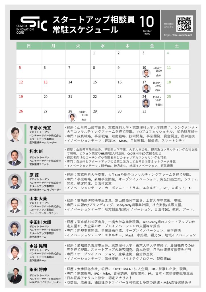 【2025年10月】スタートアップ相談員 常駐スケジュール