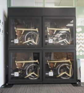 フォールディングバイク(折り畳み自転車)のシェアリングサービス、自社オリジナルのフォールディングバイクの製造を目指しているスタートアップ企業。盗難の心配もなく、実直な走行性能を兼ね備えるフォールディングバイクを、都区部で最良のユーザービリティを提供できる次世代アーバンモビリティとして、まずはシェアリングサービスで製品カテゴリの認知拡大を目指す。