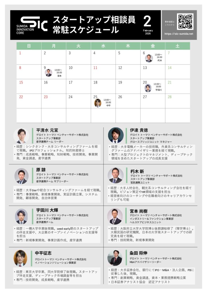 【2026年2月】スタートアップ相談員 常駐スケジュール