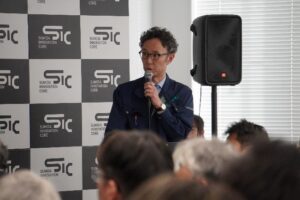 冒頭では墨田区の郡司剛英産業観光部長より挨拶をしました。SICでは「SPARK」などのプログラムを通じて優れたスタートアップを呼び込み、墨田区のものづくり事業者や大学等との共創によって「産業集積のアップデート」を目指していくという方針を改めて示すとともに、登壇企業への激励の言葉を贈り、成果報告会の幕が上がりました。